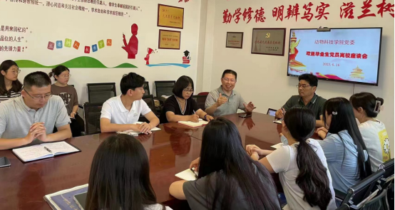 6月16日上午,动物科技公司党委在动科院一楼会议室举办了欢送毕业生党员离校座谈会。会议由动科公司党委副书记马玉玲主持,公司党委书记贠小波、经理马增军出席了会议,2023届毕业生党员及其他党员参加了会议。
